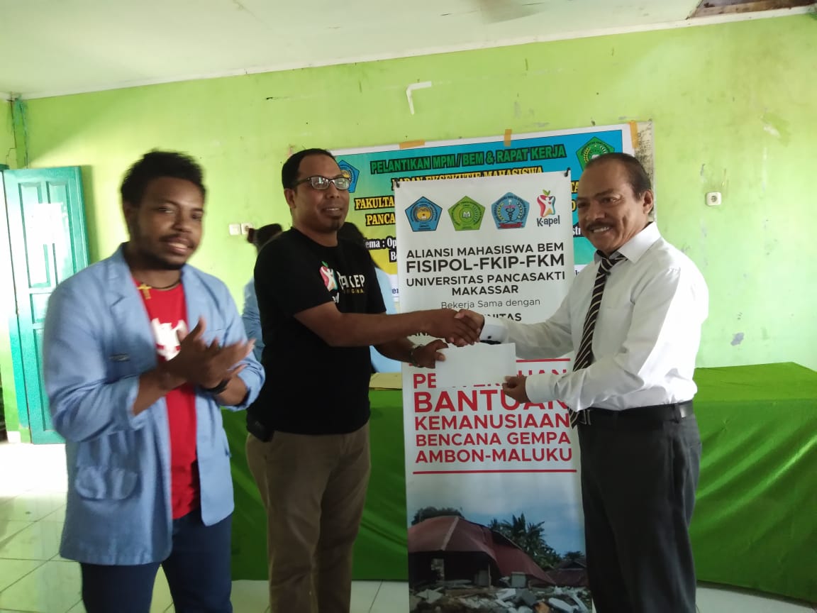 Sementara Komunitas Anak Pelangi (K-Apel) juga berterima kasih atas kepercayaan Aliansi Badan Eksekutif Mahasiswa Universitas Pancasakti. “Kami sangat berterima kasi kepada Aliansi Mahasiswa BEM FISIPOL, FKM dan FKIP yang telah mempercayakan donasinya lewat K-Apel untuk di salurkan ke Ambon semoga amanah segerah kami salurkan ke Ambon dan saya selaku Founder K-Apel yang akan mengantarkan sendiri langsung ke Ambon” Tutur Founding K-Apel.(*)