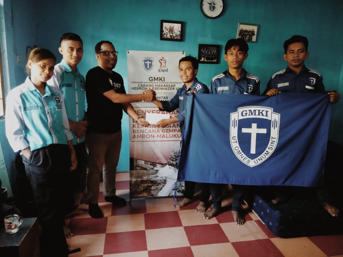 Hal inilah yang mendasari antara Komunitas Anak Pelangi (K-Apel) Makassar dan Gerakan Mahasiswa Kristen Indonesia (GMKI) Cabang Makassar HEBRON dan EBENHAEZER Komisariat UIT dalam upaya membantu meringankan beban saudara-saudara kita di Mmbon Maluku akibat bencana alam yang menimpa mereka kata Founder K-Apel Rahman Rumaday yang hadir dalam acara seremoni penyerahan donasi untuk Ambon di Sekretariat GMKI HEBRON dan EBENHAEZER Cabang Makassar Komisariat UIT Jalan Wijaya Kusuma Kelurahan Rappocini Kecamatan Rappocini Kota Makassar.