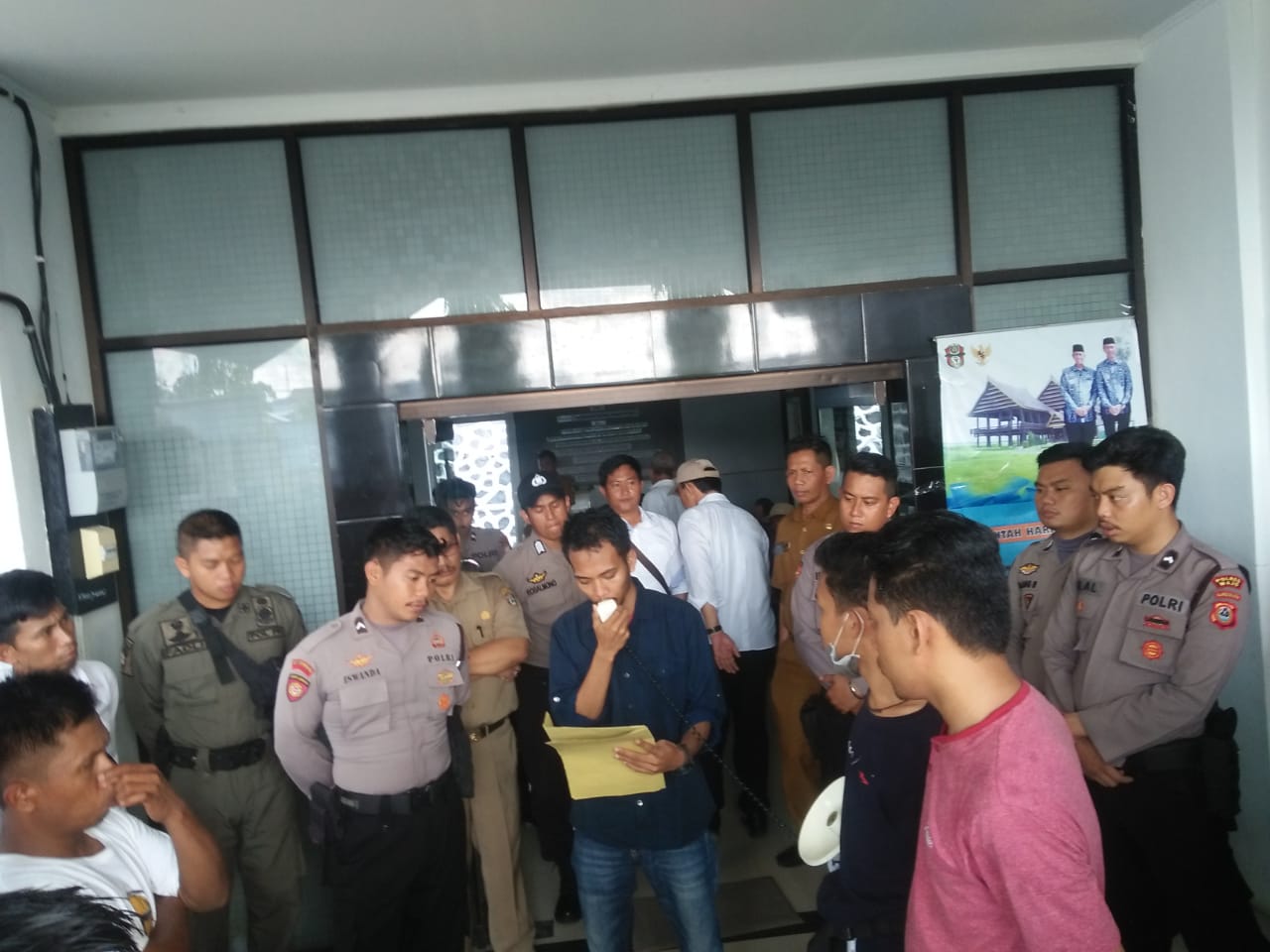 Aksi ini dilakukan adanya dugaan pelanggaran Perda No 2 tahun 2017 tentang Tata Cara Pemilihan, Pengangkatan, Masa Jabatan, Pemberhentian Kepala Desa.