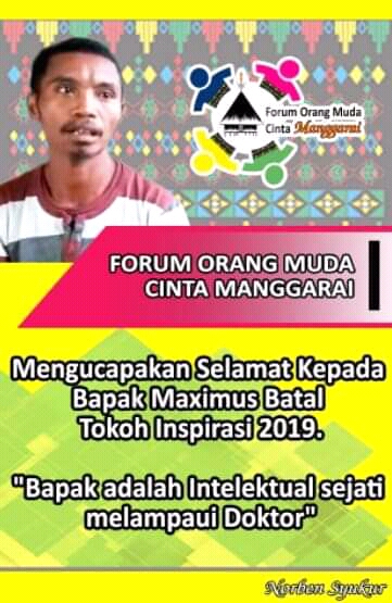 “Forum Orang Muda Cinta Manggarai mengucapkan selamat kepada Bapak Maximus Batal menjadi tokoh inspirasi 2019, Bapak adalah Intelektual sejati melampaui Doktor”, ucap Norben.