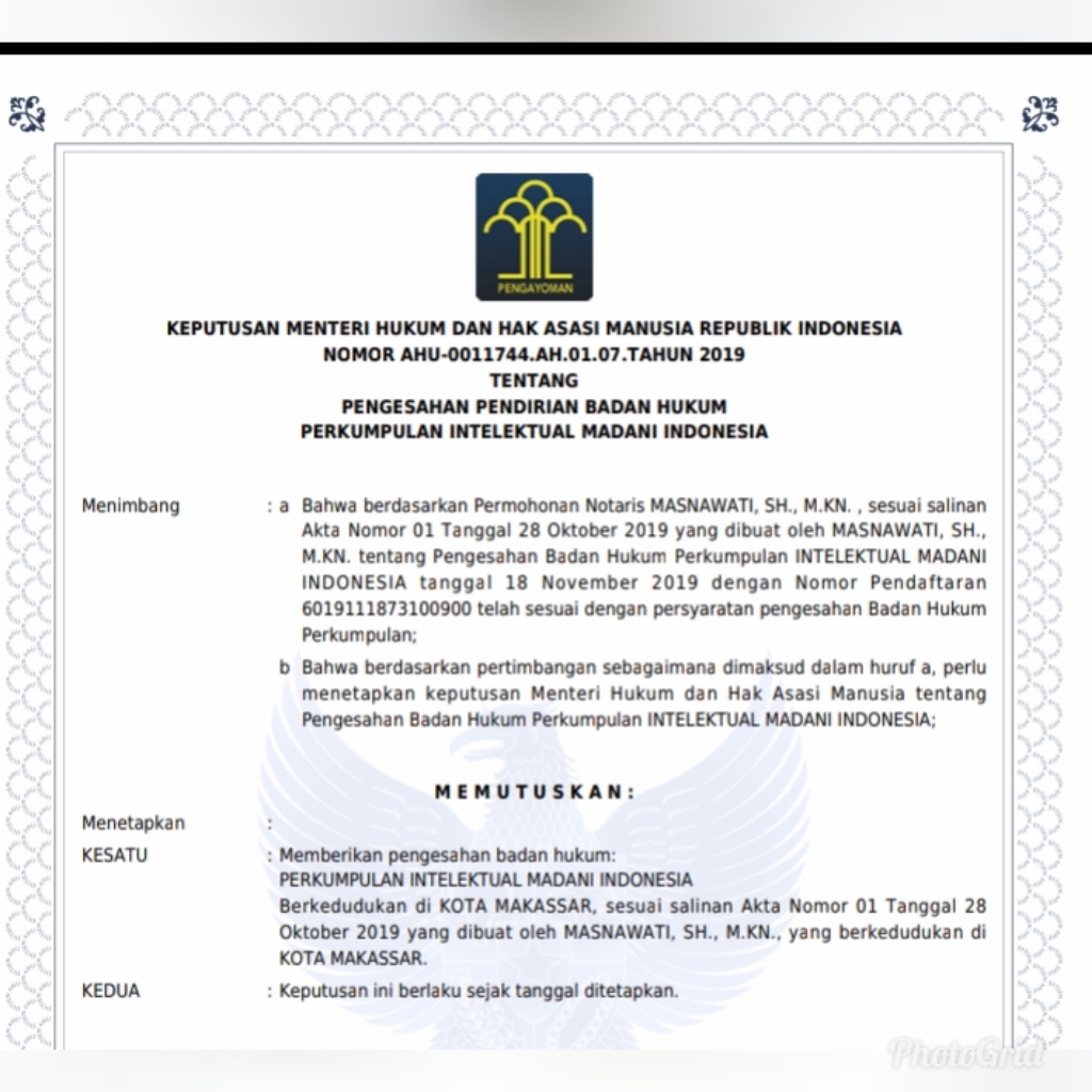 Azas, Jati Diri dan Karakteristik Perkumpulan Intelektual Madani Indonesia adalah :